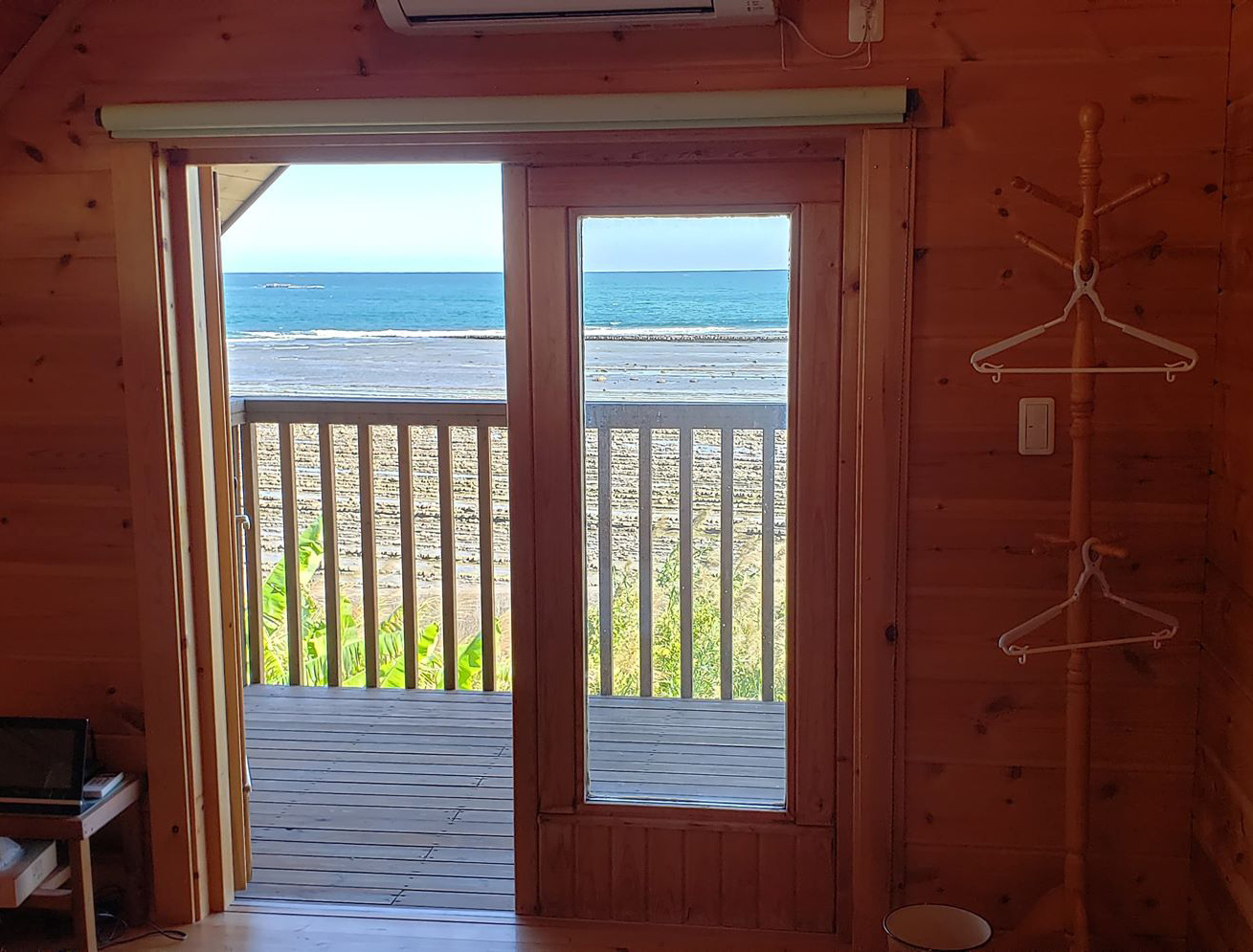 海が一望できるログハウスでの休憩を「追加料金なし」でご利用いただけます。